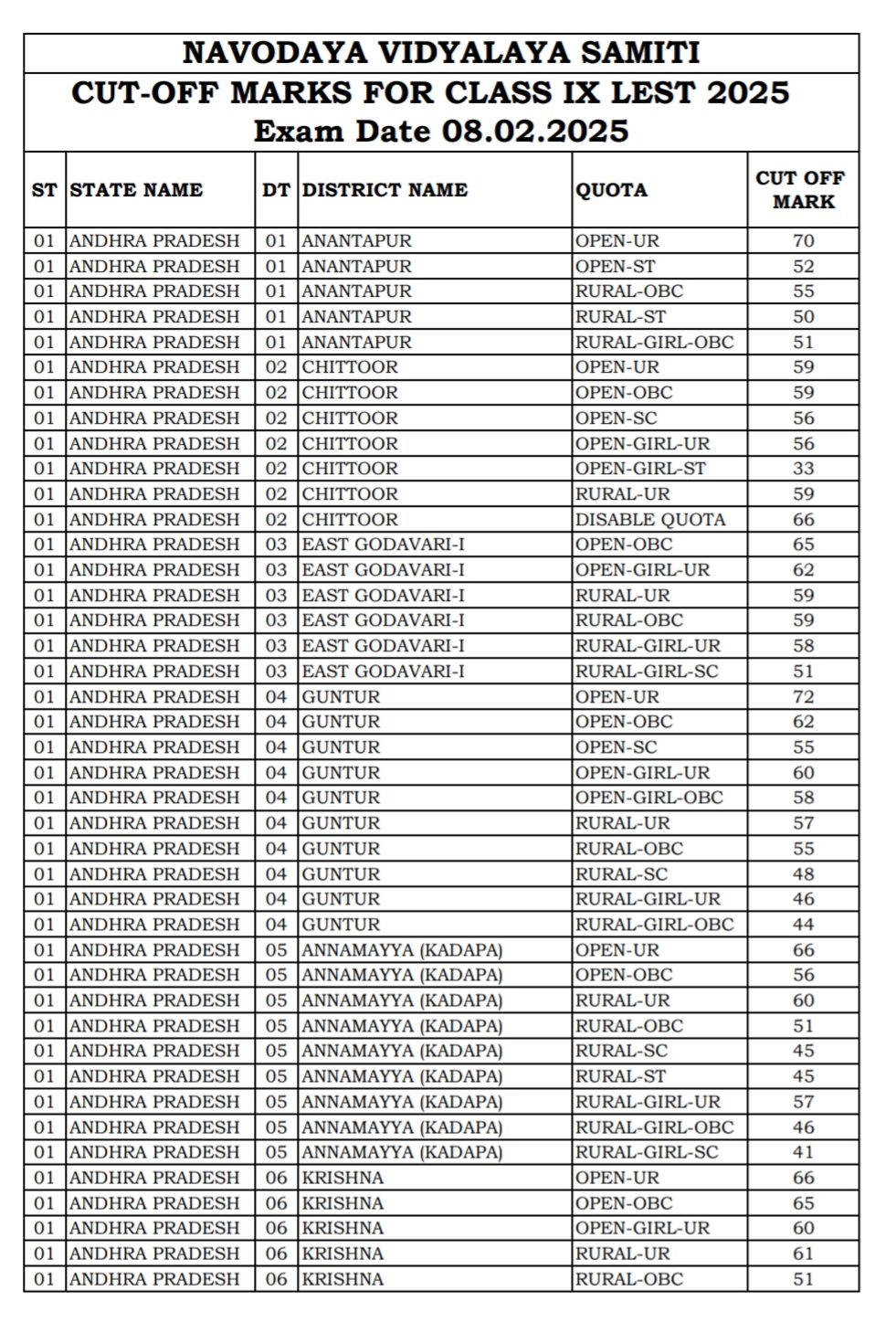 नोट: कट-ऑफ हर जिले और उपलब्ध सीटों की संख्या के आधार पर भिन्न हो सकती है।